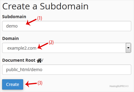 Un subdominio es una parte adicional de su dominio primario. Por ejemplo, blog.example.com es un subdominio. Por favor, siga este tutorial para crear un subdominio en cPanel.